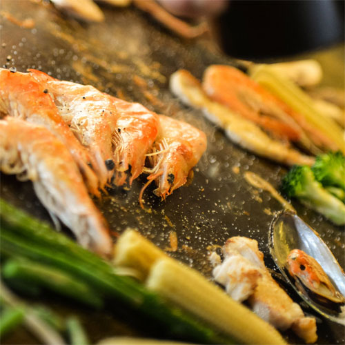 Wählen Sie aus unserem reichhaltigen Mongolischen Büffet die Zutaten für ihr persönliches mongolisches Gericht aus und unser Chefkoch wird persönlich ihr Gericht auf der 400 Grad heißen Edelstahlplatte für Sie zubereiten. Knackig-frisches Gemüse, abwechslungsreiche asiatische Vorspeisen und selbstverständlich frische Meeresfrüchte, Fisch und Fleisch machen unser Buffet zu einem Erlebnis!